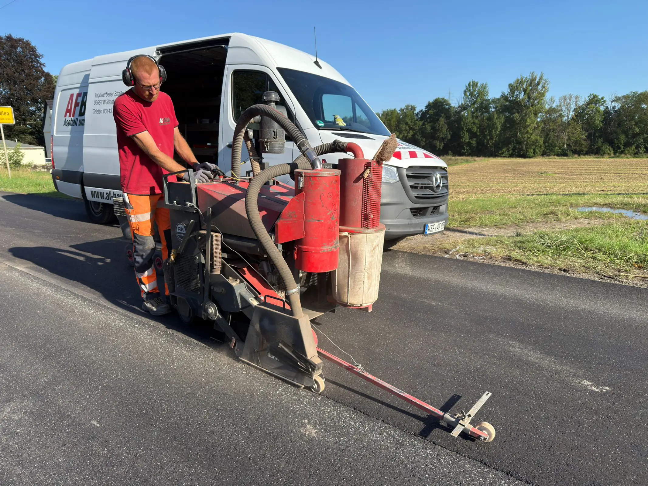 Der Fugenschnitt sollte die Schichtdicke widerspiegeln (bei Asphaltdecken in der Regel 40 mm) und mindestens 10 mm breit sein. Dabei kommen maschinelle Fugenschneider mit Absaugung zum Einsatz. Sie ermöglichen einen präzisen, staubfreien Prozess, der sowohl die Mitarbeiter als auch Anwohner schützt.