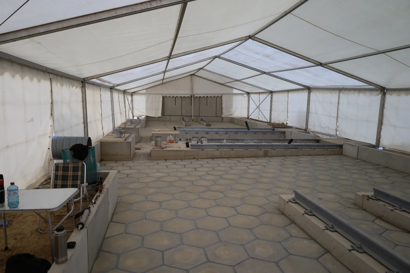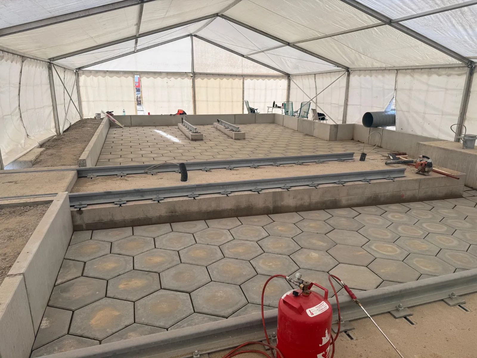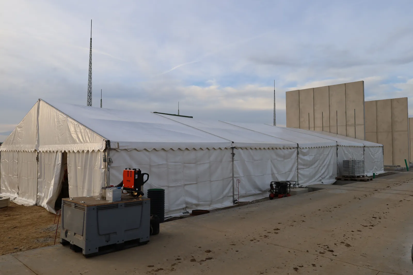 Im Projekt Magdeburg konnten die erforderlichen Taupunktbedingungen zunächst nicht erreicht werden. In Abstimmung mit dem Auftraggeber wurde daher ein Arbeitszelt aufgestellt, um die Einbauparameter (Temperatur/Taupunkt) zuverlässig einzuhalten.